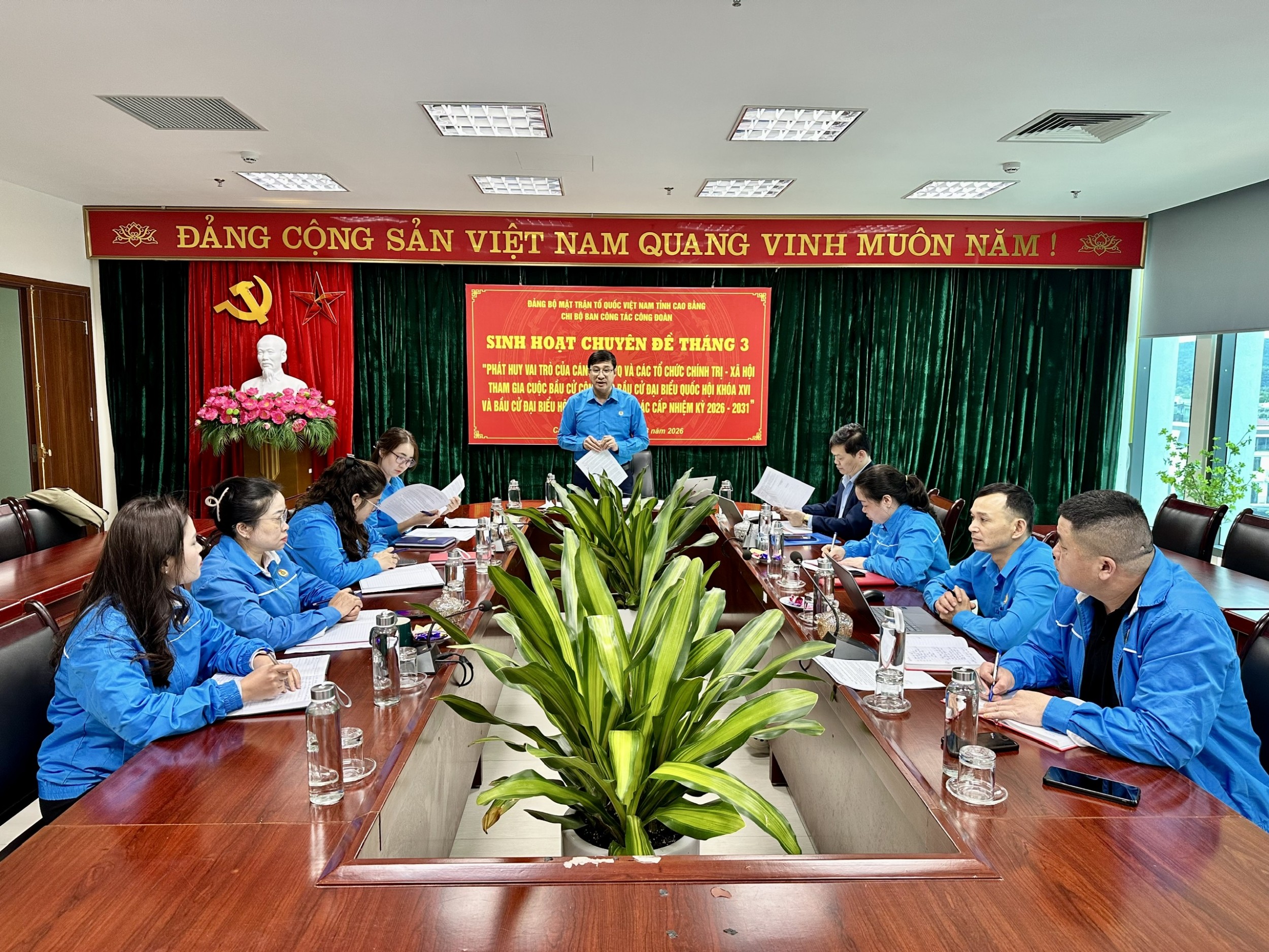 Ngày 09/3/2026, Chi bộ Ban Công tác Công đoàn tổ chức sinh hoạt chuyên đề với nội dung: “Phát huy vai trò của Mặt trận Tổ quốc Việt Nam và các tổ chức chính trị - xã hội trong công tác bầu cử đại biểu Quốc hội khóa XVI và đại biểu HĐND các cấp nhiệm kỳ 2026 - 2031”.