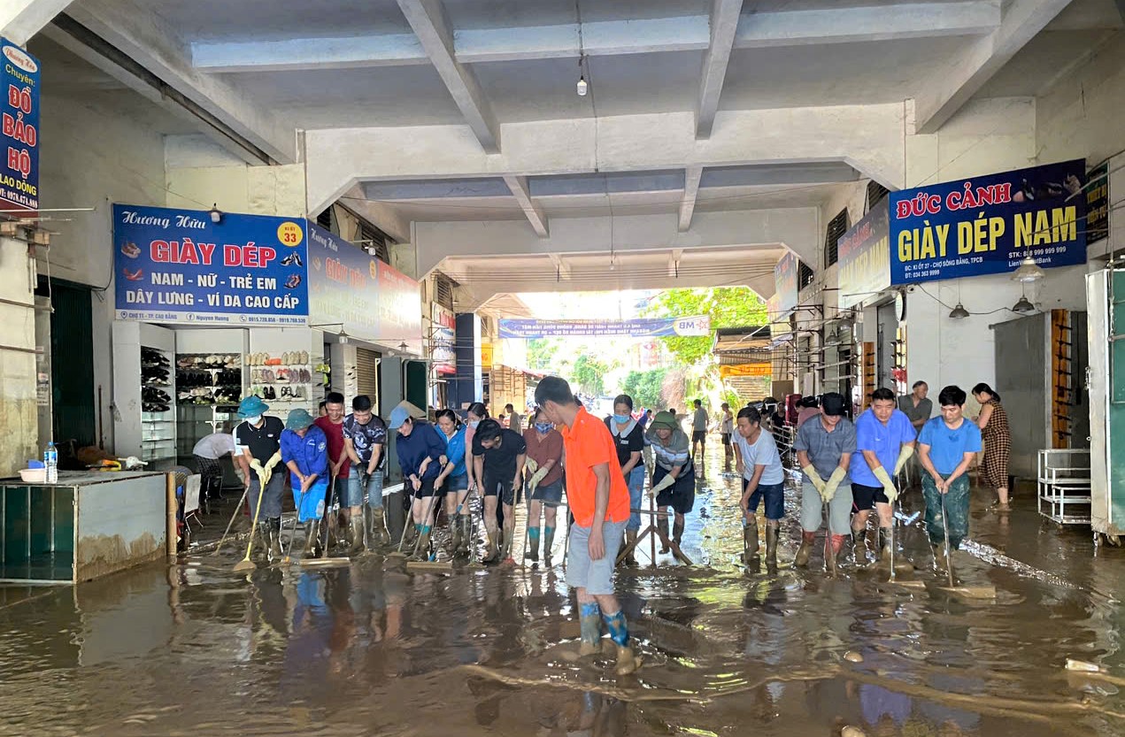 Ngay sau khi hoàn lưu bão số 10 và bão số 11 gây mưa lớn, ngập úng cục bộ tại nhiều khu vực trên địa bàn thành phố Cao Bằng, lượng rác thải, bùn đất tồn đọng tại khu vực chợ Sông Bằng là rất lớn, gây cản trở hoạt động mua bán và sinh hoạt của bà con tiểu thương.