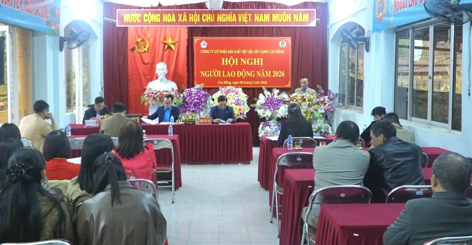 Ngày 08/3/2026, Công đoàn cơ sở Công ty Cổ phần Sản xuất Vật liệu xây dựng Cao Bằng phối hợp với Ban Giám đốc Công ty tổ chức Hội nghị Người lao động năm 2025.