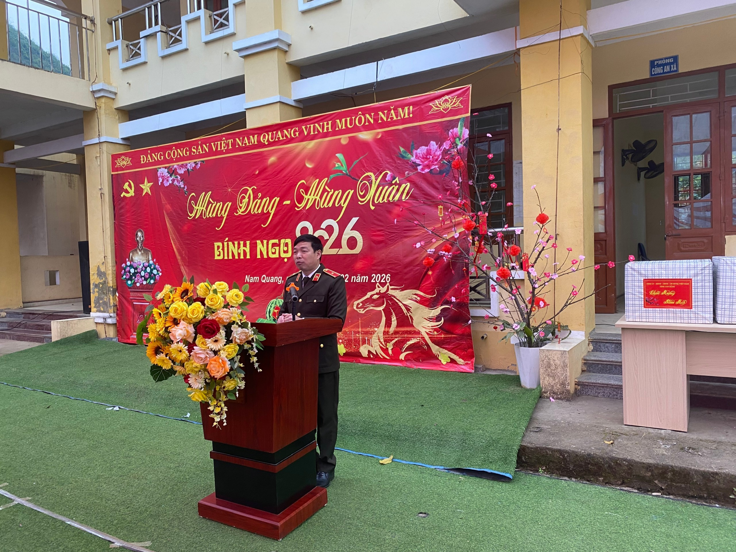 Nhân dịp Tết Nguyên đán Bính Ngọ năm 2026, ngày 04/02/2026, Đoàn công tác của tỉnh do đồng chí Nguyễn Quang Vinh, Ủy viên Ban Thường vụ Tỉnh ủy, Giám đốc Công an tỉnh làm Trưởng đoàn đã đến thăm, chúc Tết, tặng quà và ăn Tết cùng Nhân dân xóm Phia Cọ, xã Nam Quang, tỉnh Cao Bằng.