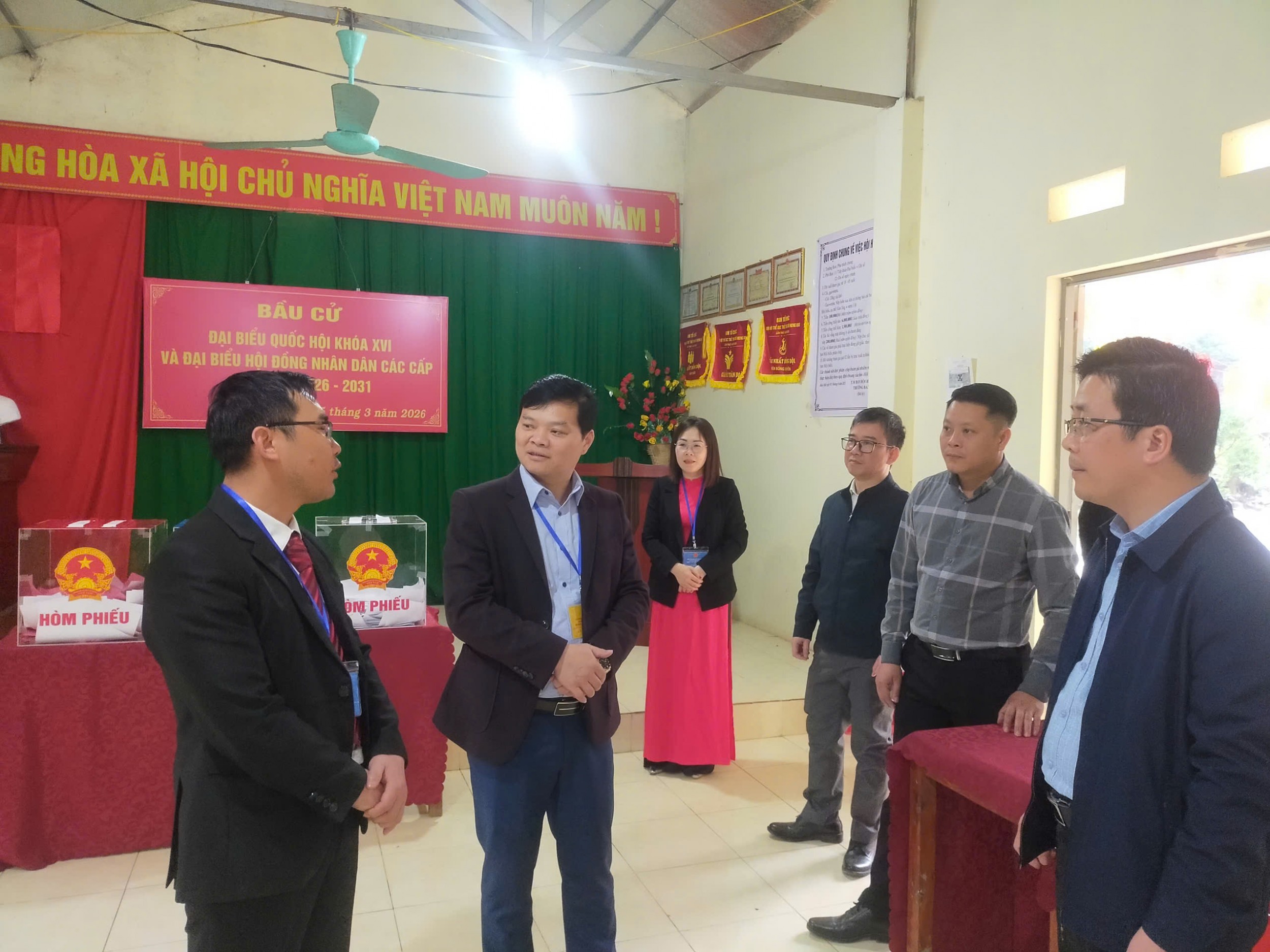 Đ/c Bế Đăng Khoa kiểm tra công tác bầu cử tại xã Hưng Đạo