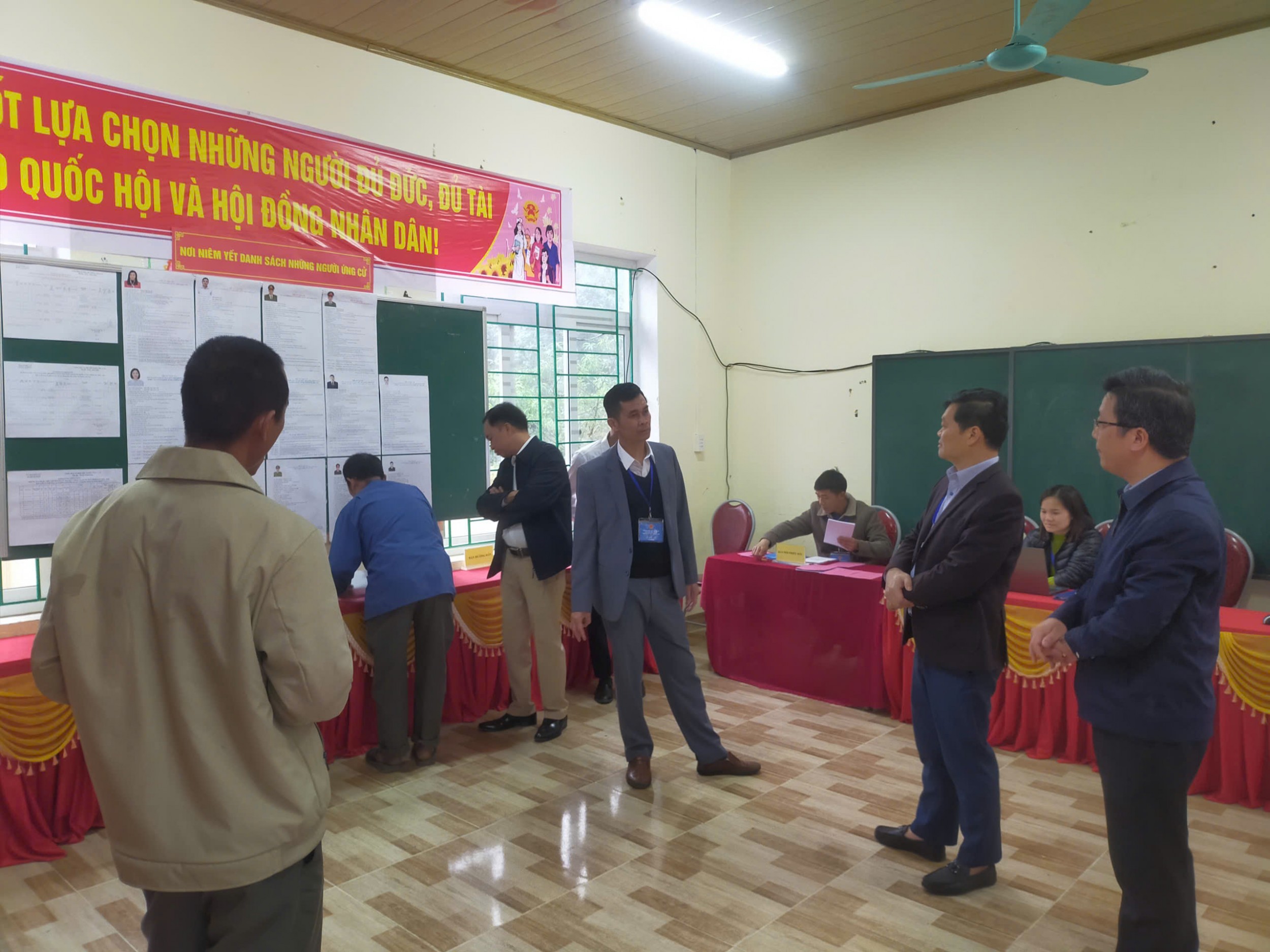 Đoàn Kiểm tra việc niêm yết danh sách cử tri, địa điểm bầu cử tại khu vực bỏ phiếu