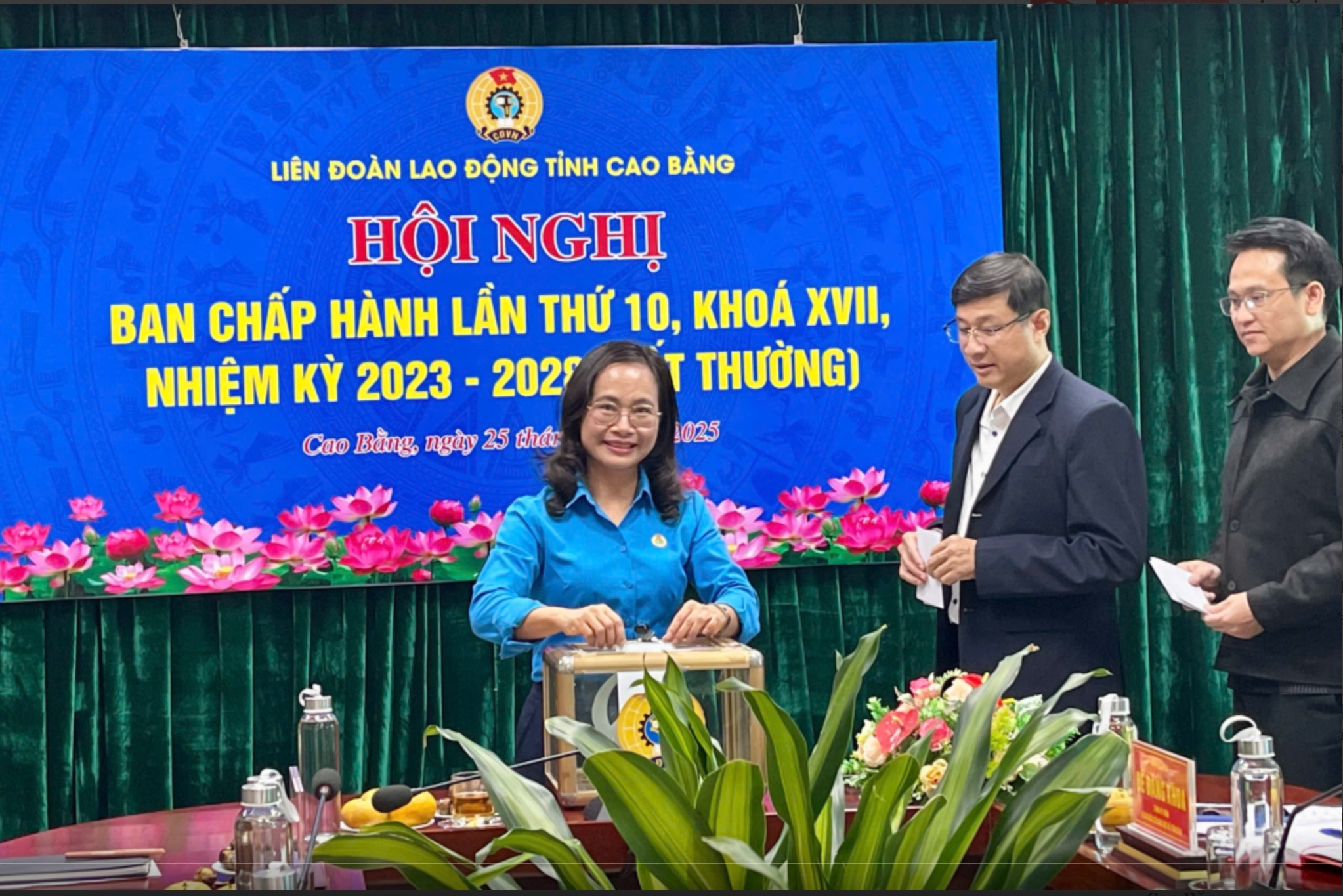 Hội nghị tiến hành bỏ phiếu bầu Ủy viên Ban Chấp hành, Ủy viên Ban Thường vụ và chức danh Chủ tịch LĐLĐ tỉnh. Kết quả, đồng chí Bế Đăng Khoa trúng cử chức vụ Chủ tịch LĐLĐ tỉnh khóa XVII, nhiệm kỳ 2023 - 2028.