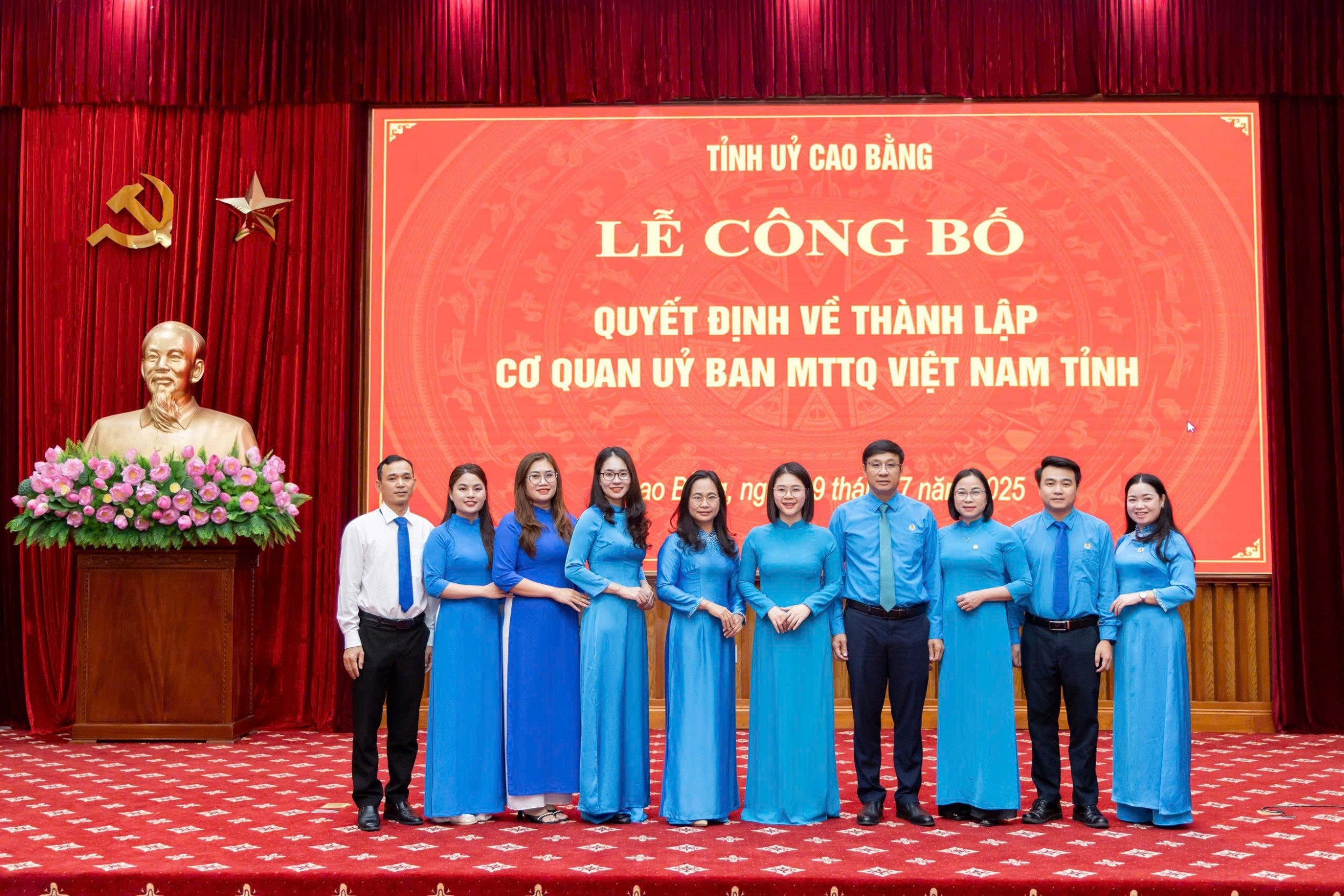 Quyết định của Đảng uỷ các cơ quan Đảng về thành lập Đảng bộ, chỉ định Ban Chấp hành Đảng bộ; Ban Thường vụ Đảng uỷ, Bí thư, Phó Bí thư Đảng uỷ và Uỷ ban Kiểm tra Đảng uỷ Uỷ ban MTTQ Việt Nam tỉnh Cao Bằng trực thuộc các cơ quan Đảng tỉnh gồm 172 đảng viên, thành lập 12 chi bộ trực thuộc Đảng bộ Uỷ ban MTTQ Việt Nam tỉnh. Đồng chí Vũ Đình Quang, Uỷ viên Ban Thường vụ Tỉnh uỷ, Chủ tịch Uỷ ban MTTQ Việt Nam tỉnh được chỉ định giữ chức vụ Bí thư Đảng uỷ; đồng chí Vũ Khắc Quang, Phó Chủ tịch Thường trực Uỷ ban MTTQ Việt Nam tỉnh được chỉ định giữ chức vụ Phó Bí thư Đảng uỷ; đối với LĐLĐ tỉnh đồng chí Nguyễn Thị Hương Nhung, Phó Chủ tịch LĐLĐ tỉnh phụ trách LĐLĐ tỉnh được chỉ định giữ chức vụ Phó Chủ nhiệm UBKT Đảng uỷ.