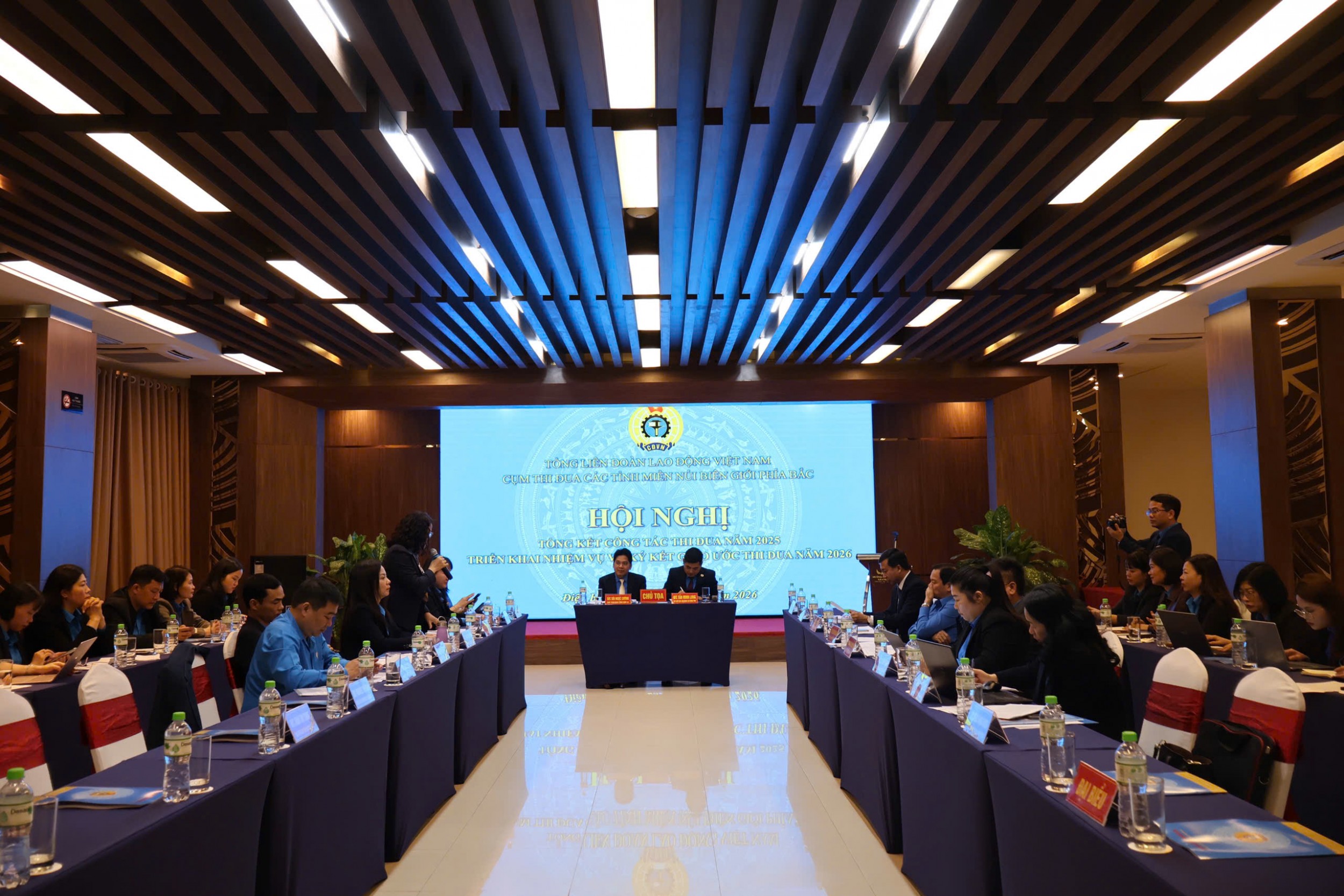 Dự và chỉ đạo Hội nghị có đồng chí Thái Thu Xương, Phó Chủ tịch Thường trực Tổng Liên đoàn Lao động Việt Nam; đại biểu lãnh đạo tỉnh Điện Biên có đồng chí Nguyễn Minh Phú, Tỉnh ủy viên, Phó Chủ tịch UBND tỉnh; cùng đại diện Liên đoàn Lao động 07 tỉnh trong Cụm thi đua các tỉnh miền núi, biên giới phía Bắc, được thành lập theo Quyết định số 699/QĐ-TLĐ ngày 31/12/2025 của Tổng Liên đoàn Lao động Việt Nam về việc sắp xếp lại Cụm, Khối thi đua.