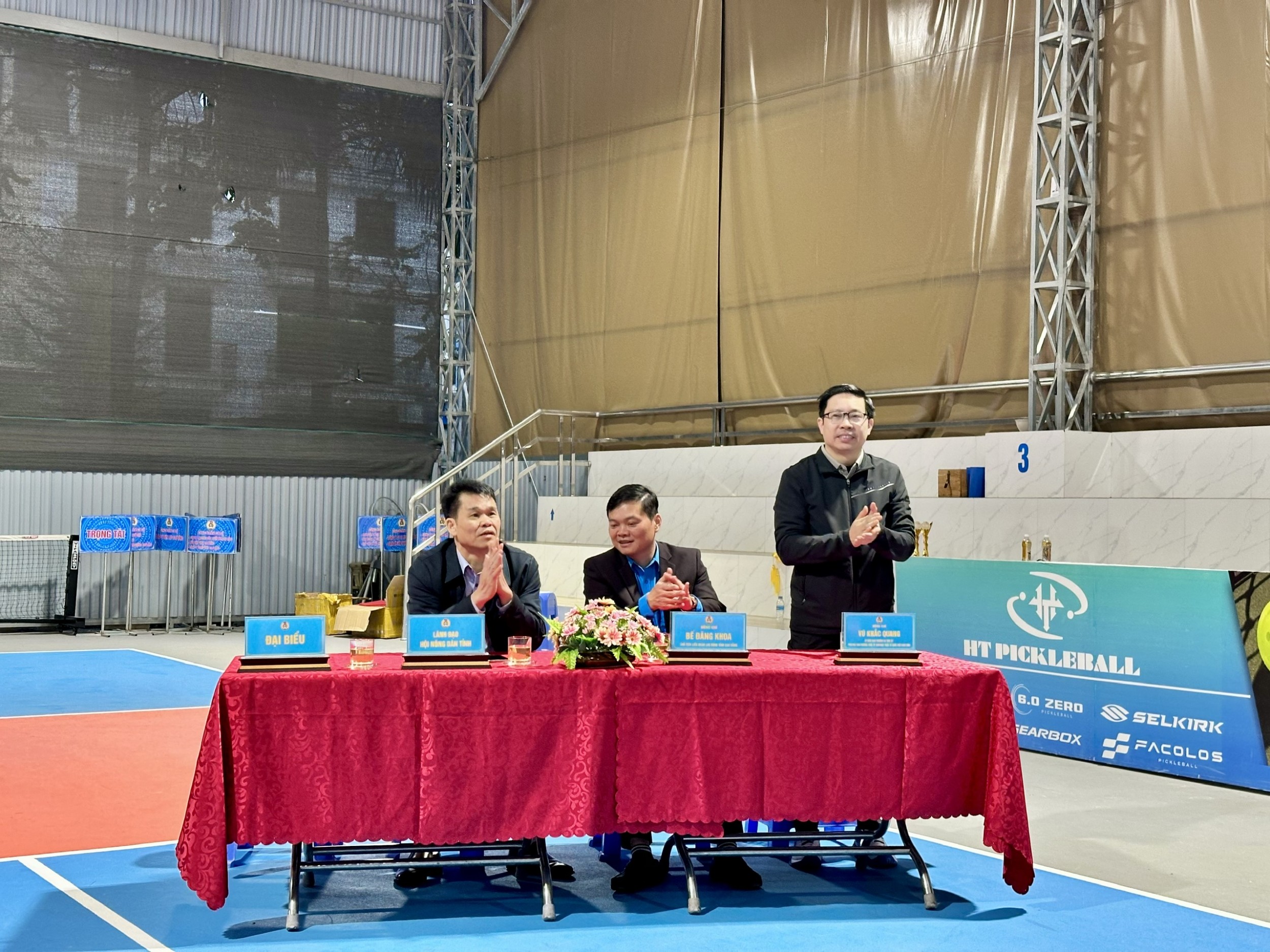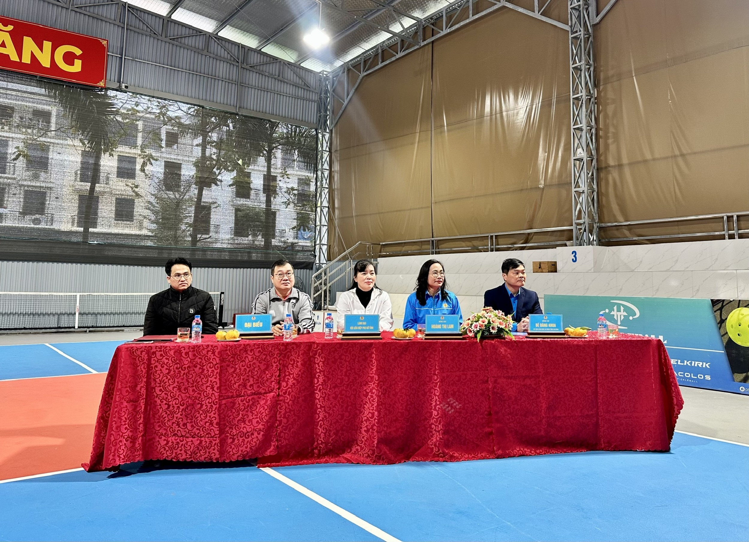 Các đồng chí lãnh đạo dự tại nội dung Khai mạc Giải Pickleball công nhân, viên chức, lao động năm 2025