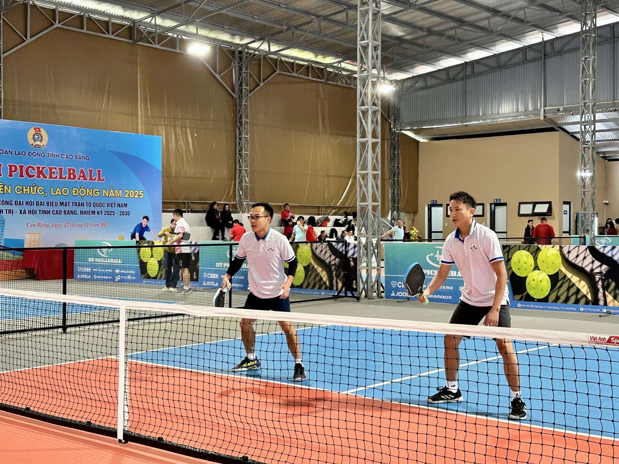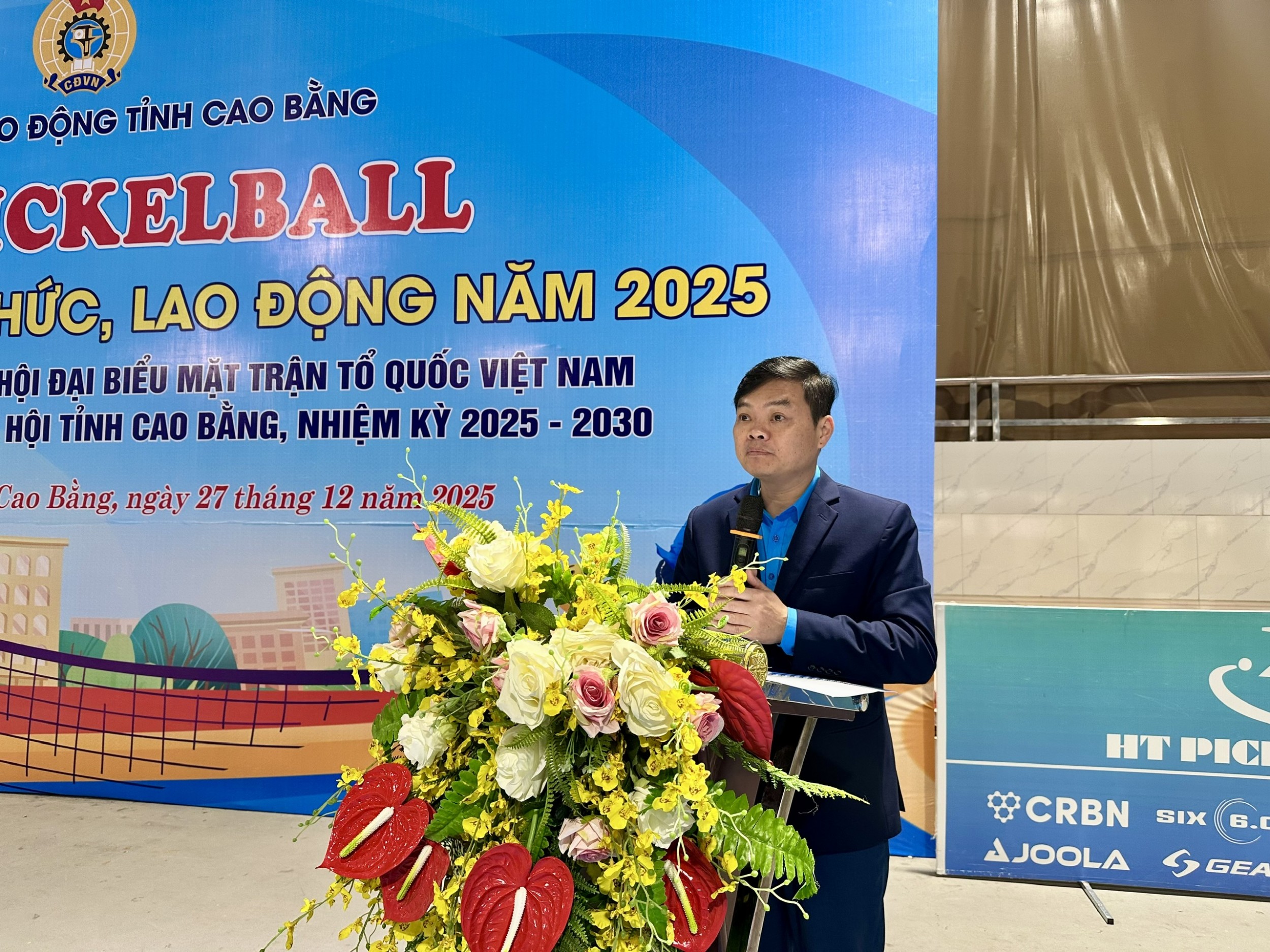 Ngày 27/12/2025, Liên đoàn Lao động tỉnh Cao Bằng tổ chức Giải Pickleball công nhân, viên chức, lao động năm 2025, hoạt động thiết thực chào mừng thành công Đại hội Đại biểu Mặt trận Tổ quốc và các tổ chức chính trị - xã hội tỉnh Cao Bằng, đồng thời tạo khí thế thi đua sôi nổi ngay từ đầu nhiệm kỳ Đại hội mới trong đoàn viên, công nhân, người lao động (ĐVCNLĐ) trên địa bàn tỉnh.